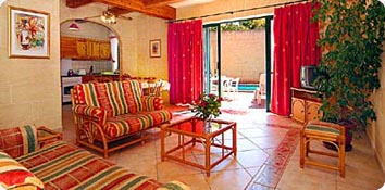 The villa is bungalow style and has been decorated to a very good standard with pine furniture. All the rooms have wooden beamed ceilings and ceramic, tiled floors. |
